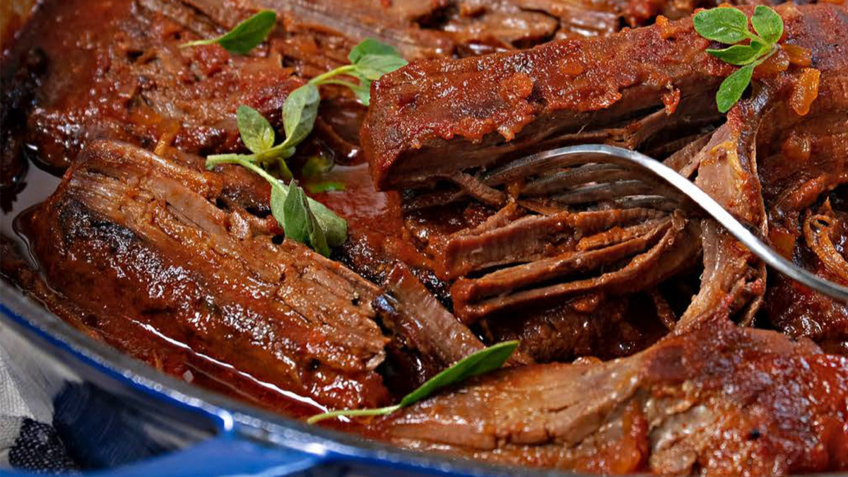 Cocine la carne en el horno durante 3 horas, tapada con papel aluminio.